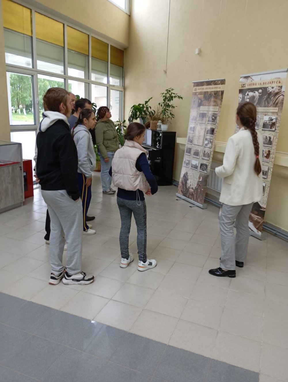 Сотрудники историко-культурного центра провели экскурсию по выставке "Подвиг белорусского народа" для воспитанников учреждения "Территориальный центр социального обслуживания населения Буда-Кошелевского района"